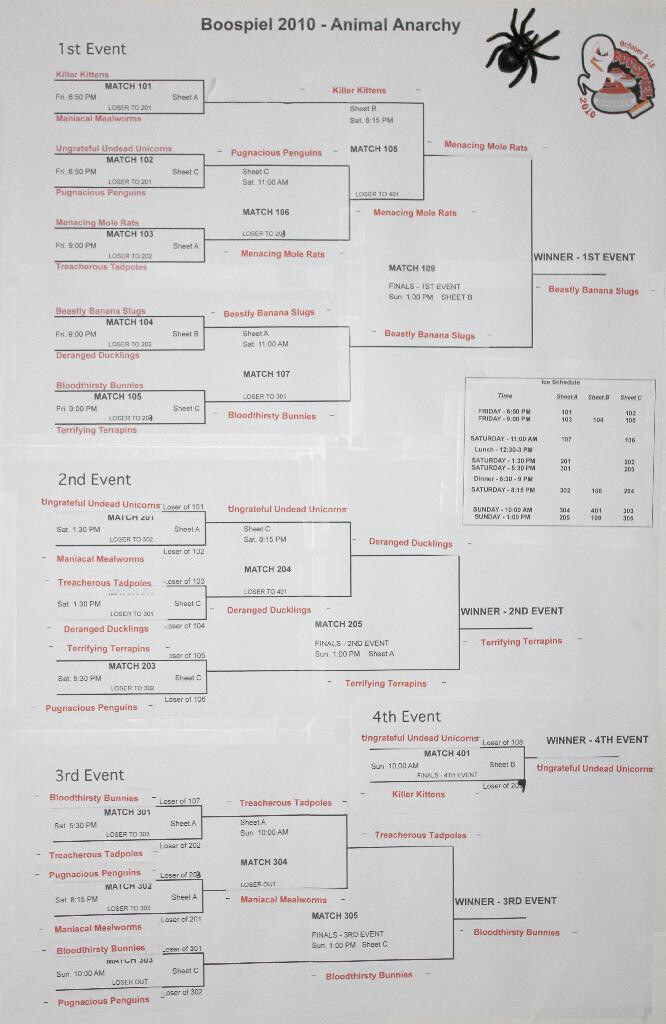 Win Loss Chart for the 2010 Boospiel